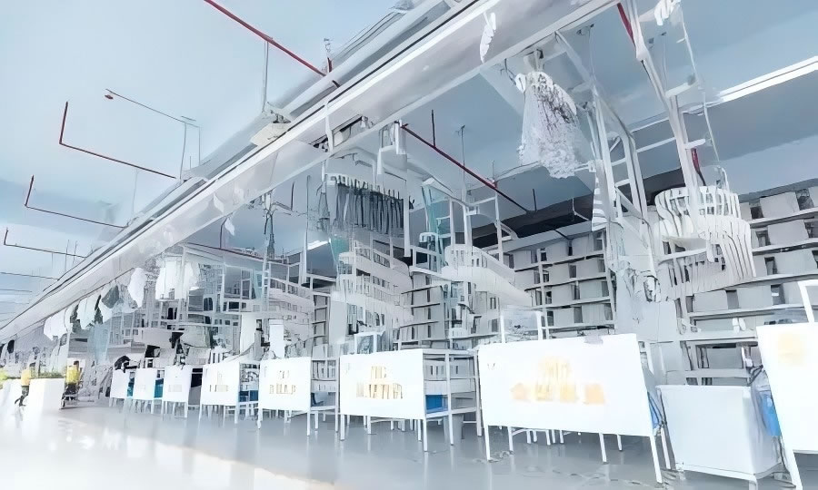 進一步引進了一體式智能吊掛系統和自動分碼裝箱技術,金鼎智造實現了從裁片掛片到成衣出貨的流程優化,僅需10多分鐘即可完成。同時,車間內廣泛采用進口衣車設備、自動開筒機、自動下擺機、花樣機以及包裝機等自動化縫制設備,這些創新舉措顯著降低了生產成本。