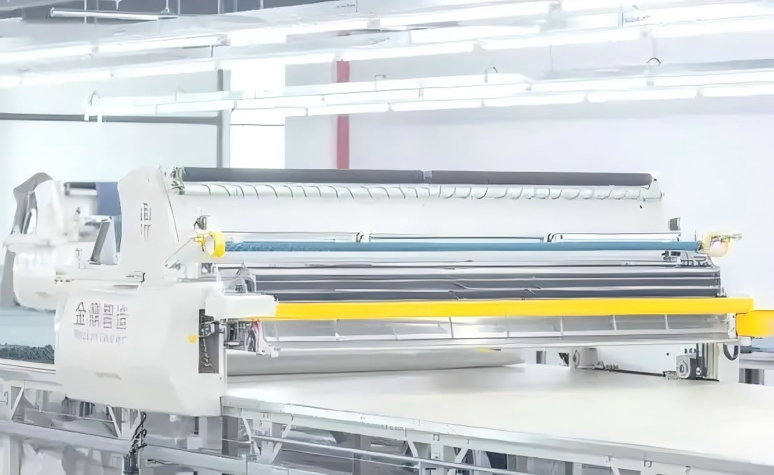 在裁剪車間,金鼎智造引進了意大利先進設備,裁剪效率提升顯著,結合自動搬運AGV技術,打造了裁片超市,實現了裁片存儲、檢驗以及配送的全自動化。這一改進不僅顯著提升了裁片的周轉速度,還成功降低了20%的裁片庫存,并大幅減少了60%的搬運人員。