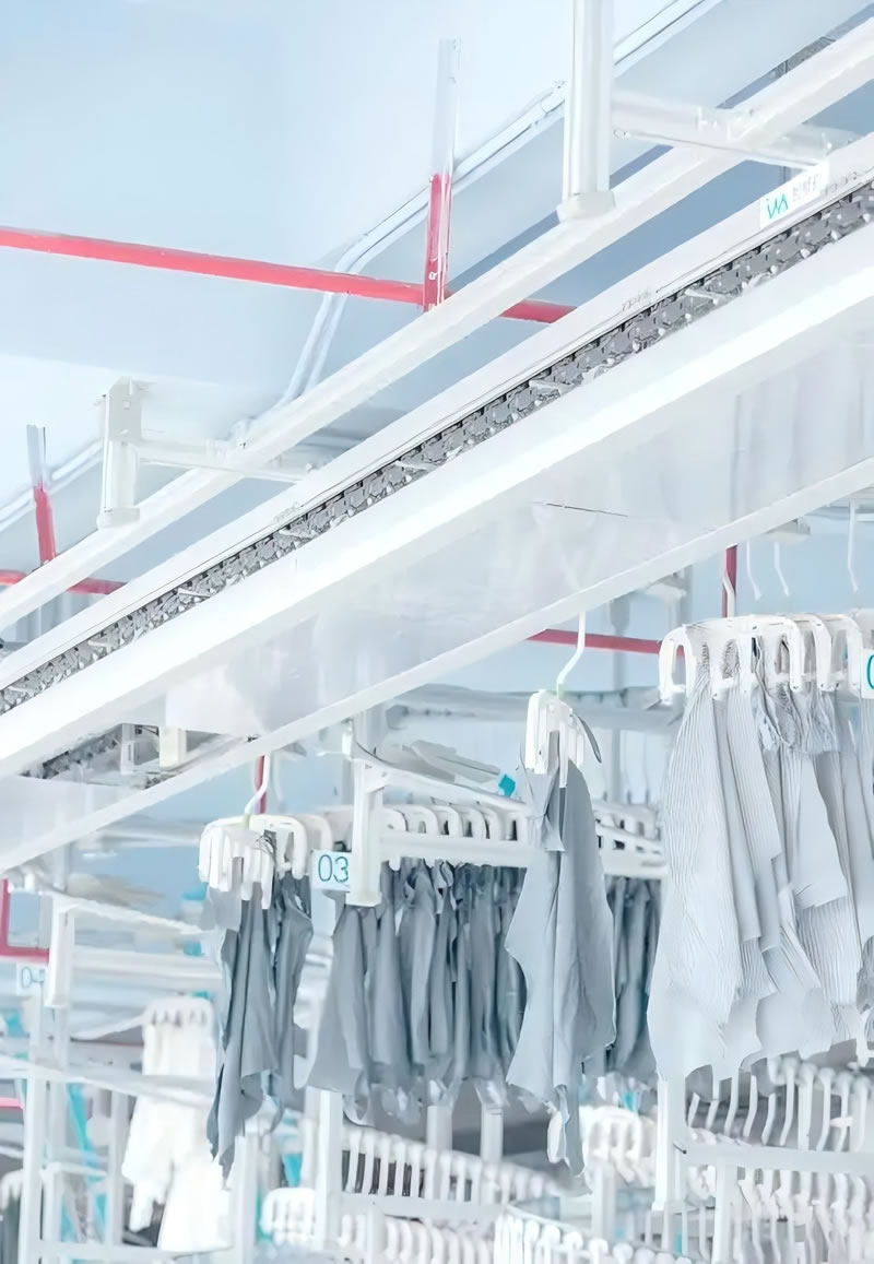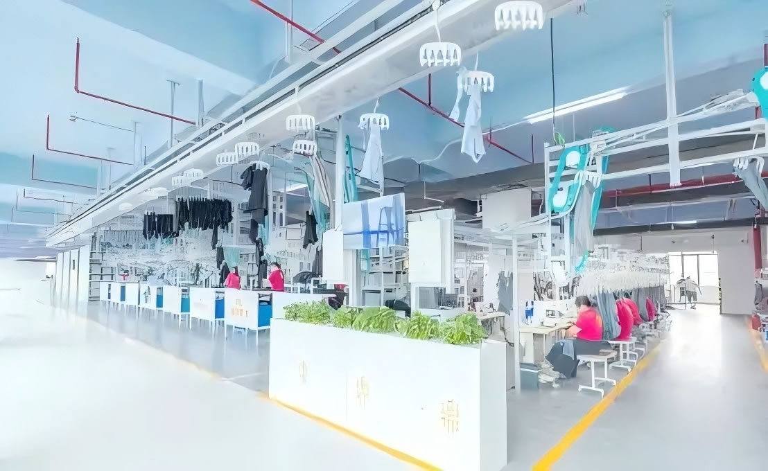 工業園的核心之一是智能吊掛系統,主軌長達90米,能夠實現對單層工廠全流程生產的智能管理。此外,園區還配備了立體倉庫,通過自動化技術實現面料的高效出入庫,提升了人力效率。